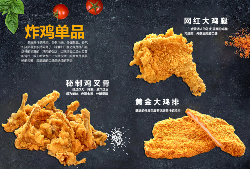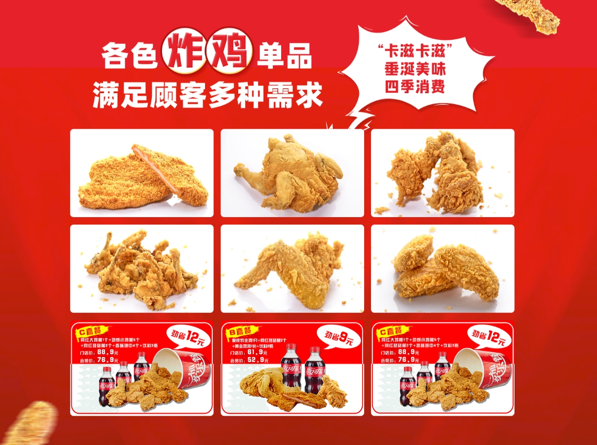 各色炸鸡单品,满足顾客多种需求,“卡滋卡滋”,垂涎美味,四季消费!